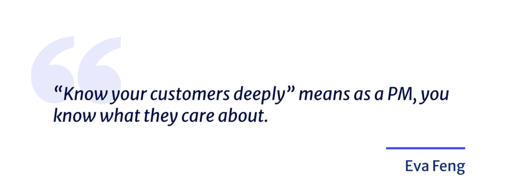“Know your customers deeply” means, as a PM, you know what they care about. Segment customers based on use case, put numbers behind each segment, ask questions such as, What do customers do today? What is the status quo today? What’s wrong with this status quo and what are the pain points our customers are facing? What are the pain points financially important to our customers?