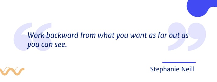 Because especially as you start to get further in your career, you will get more and more opportunities. And if you don’t have that guiding north star, it’s hard to know which opportunities are the right ones, or which ones present the right type of the right type of risk for you. So work backwards from as far as you can see.