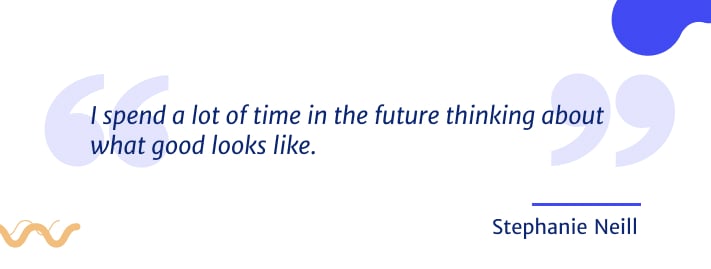 I spend a lot of time in the future thinking about what good looks like, thinking about what is our company mission, what is our big, hairy, audacious goal, and what are the different pathways product pathways we can take to get there? And then how can I de-risk testing out those pathways such that we will ultimately get there?