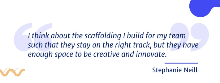 I think about setting them up for success, I think about what scaffolding am I building such that they are staying on the right track, but they have enough space to be creative and innovate and try and fail and win, and all the everything in between.