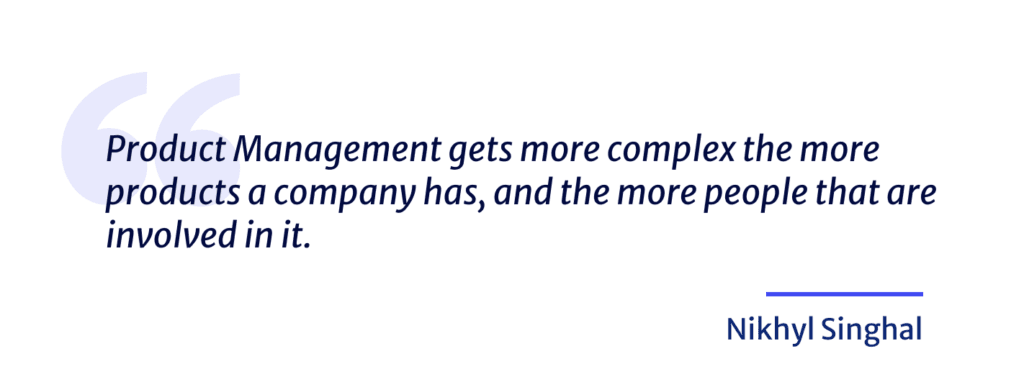 And because I held the roles at different scales, I thought it would be worth sharing what I’ve learned. These titles can be confusing. I want to normalize as much as possible. I’ll start by saying that Product Management means lots of things to lots of different people, and it changes a lot depending on the company you’re in. But the primary thing that I would note is that Product Management gets more complex the more products a company has, and the more people that are involved in it.