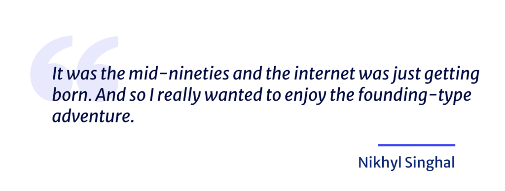 I want to introduce myself. My name’s Nikhyl Singhal. I’ve been in the tech industry for about 20 years. My career is sort of shaped into two chapters. My first chapter leaving school was really focused on startups. It was the mid-nineties and the internet was just getting born. I really wanted to enjoy the founding-type adventure. So I joined a company, I founded an early dotcom, and then eventually became a co-founder of two companies. One that I was a CEO of, which was Cast Iron Systems, which was in the enterprise side of the world. That was eventually acquired by IBM.