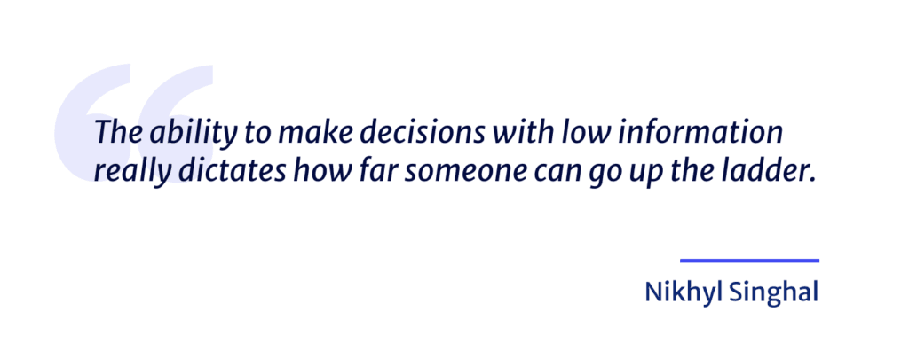 When you have more, you just can’t have that unless you just work all the time and never get sleep and that’ll eventually burn you out. So this is one of the more telling aspects to determine, how refined is this skill? The ability to make decisions with low information really dictates how far someone can go up the ladder.